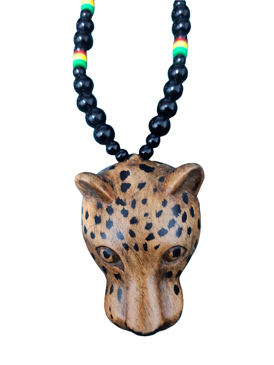 Black Glass beaded Necklace with Leopard 🐆 Head