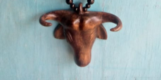 Black Onyx glass beaded Necklace with Bull Head Medallion
